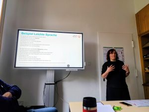 Die Übersetzerin Sarah Jane Borchert führte uns in die Regeln einer inklusiven Leichten Sprache ein